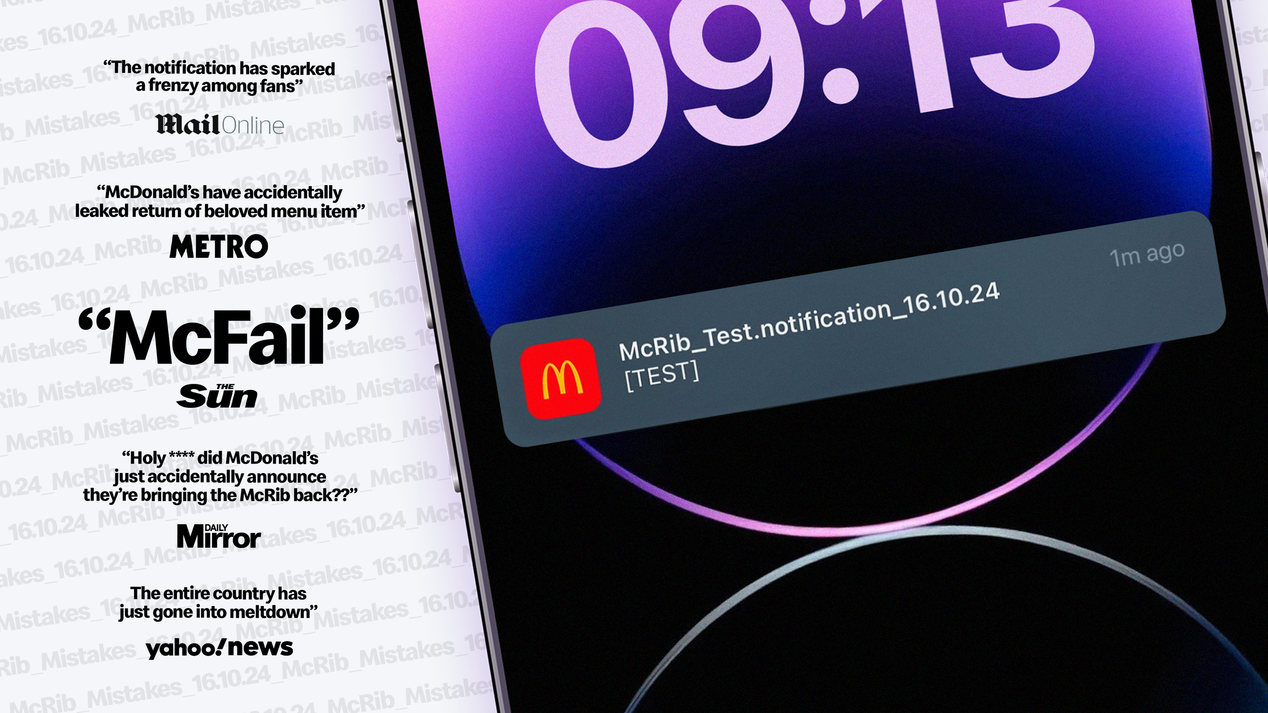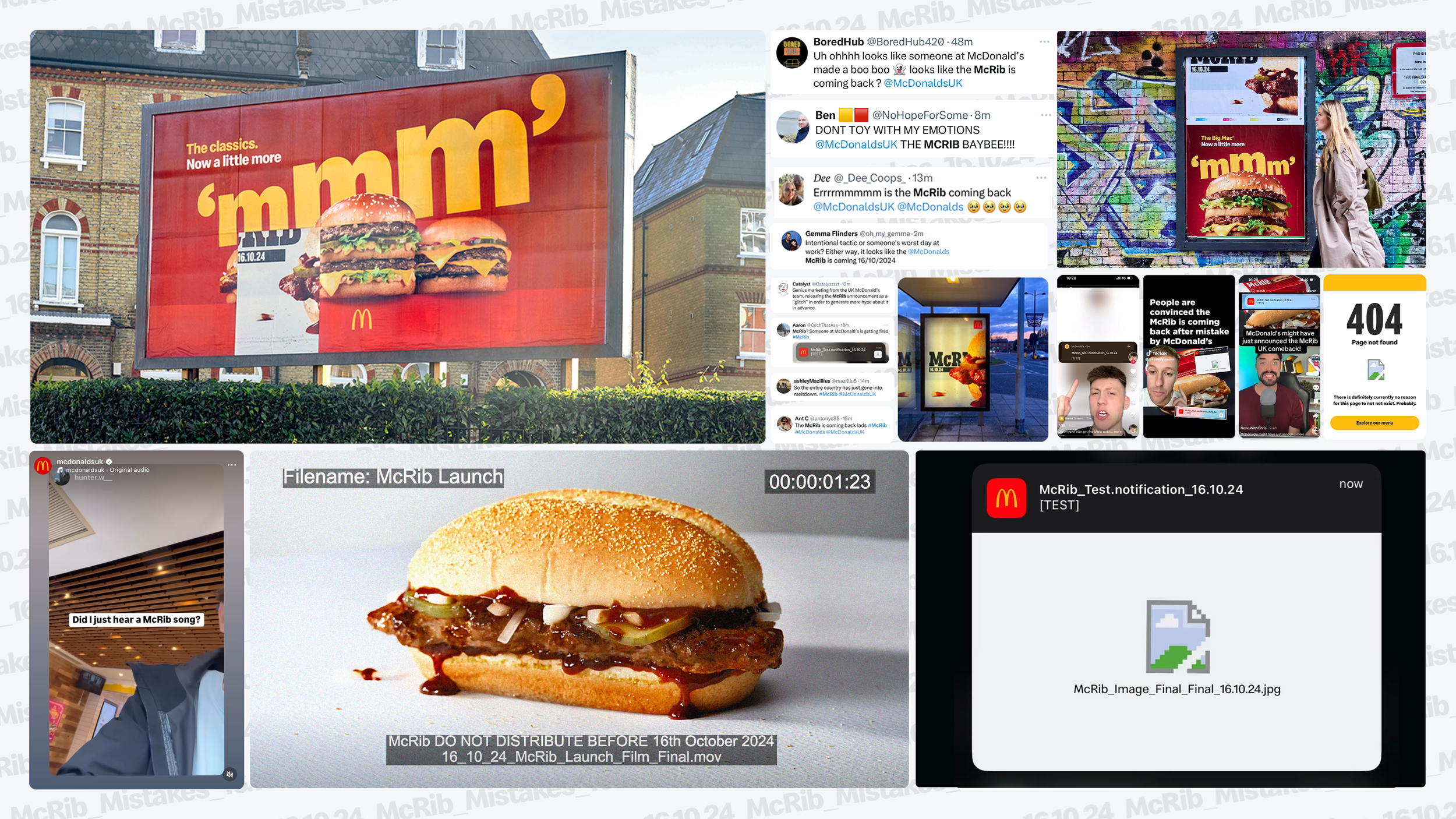 It all began with a single test notification ‘accidentally’ sent to every McDonald’s app user. Within an hour, it was the number 1 trending topic on X. We followed up this first ‘accident’ with many others: a billboard for a Big Mac with the McRib plastered on just one panel, a McRib glitched in the middle of a McDonald’s TV ad, posters that were stuck on their rollers, social posts that were clear as BBQ sauce. This all drove the nation into a McRib frenzy. Oh well, mistakes do happen.